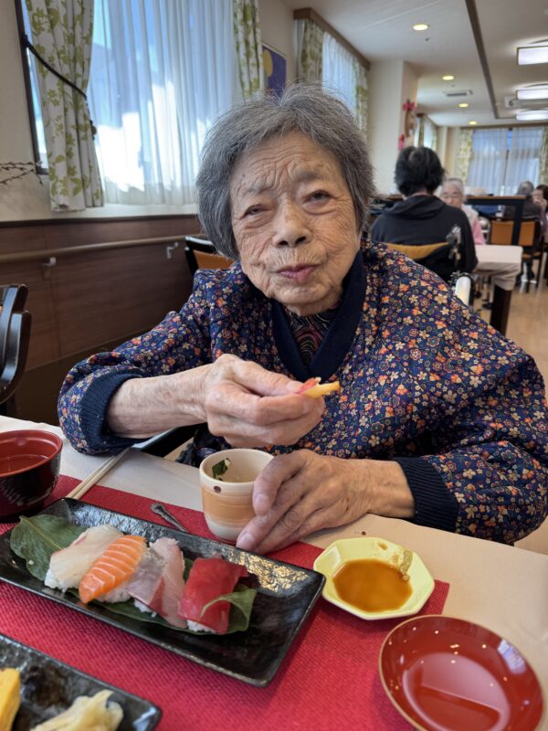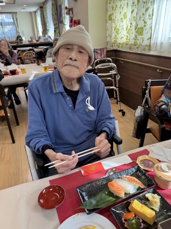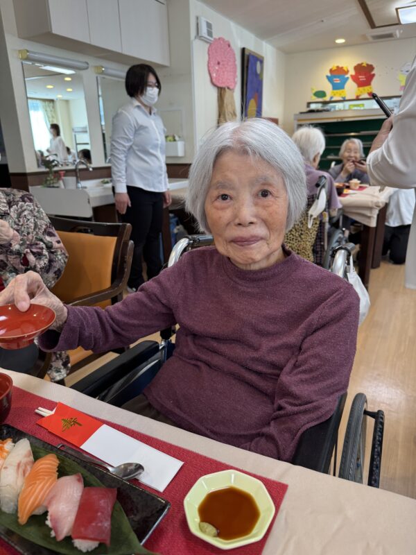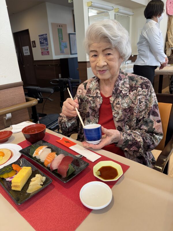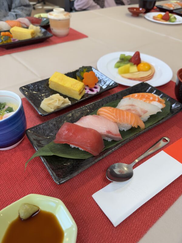 お昼にお寿司や茶碗蒸し、フルーツと豪華ランチを召し上がりました。