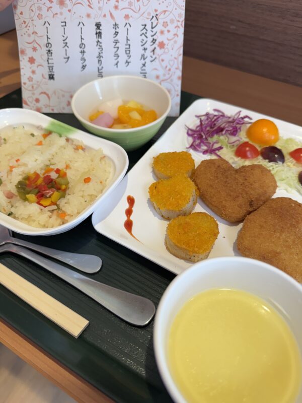 お昼はバレンタイン特別メニューで