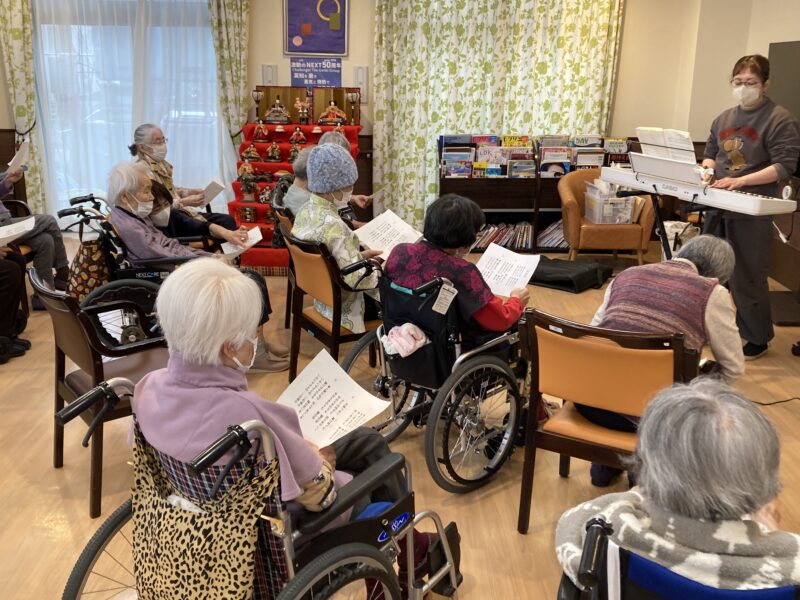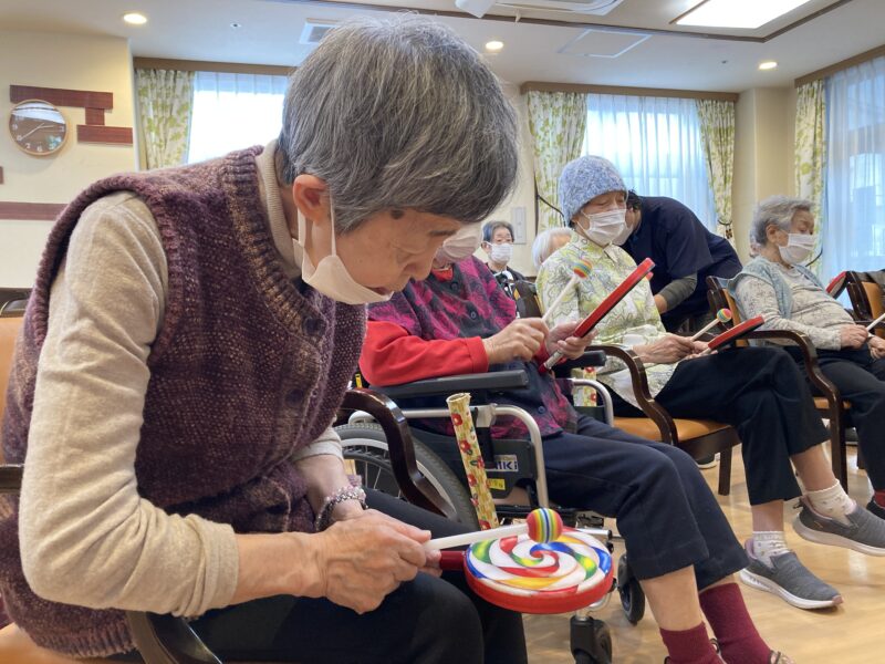 本日は月に一度の音楽療法でした!春の歌や楽器を使ってノリノリの曲などを歌いました♪