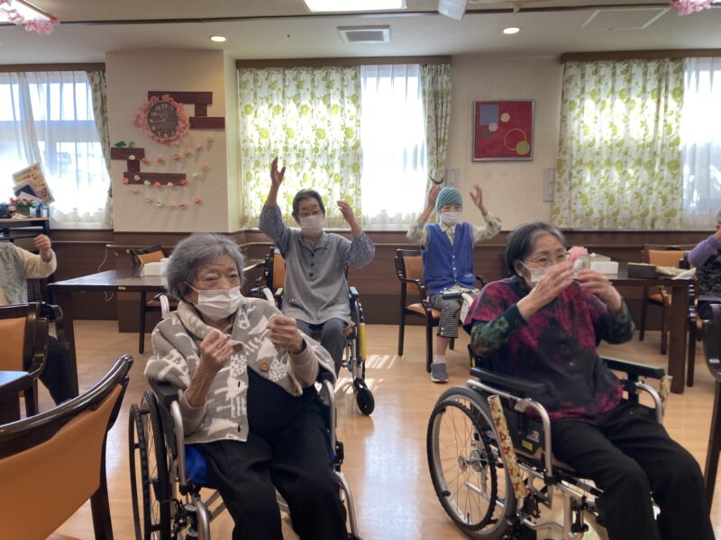 本日の午後は2階の方も参加され、恒例のカラオケ大会です。マイク持たない方も知っている曲だと歌ったり楽しまれています。