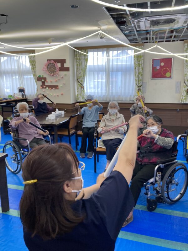 本日は棒を使った体操と脳トレを行なっています。