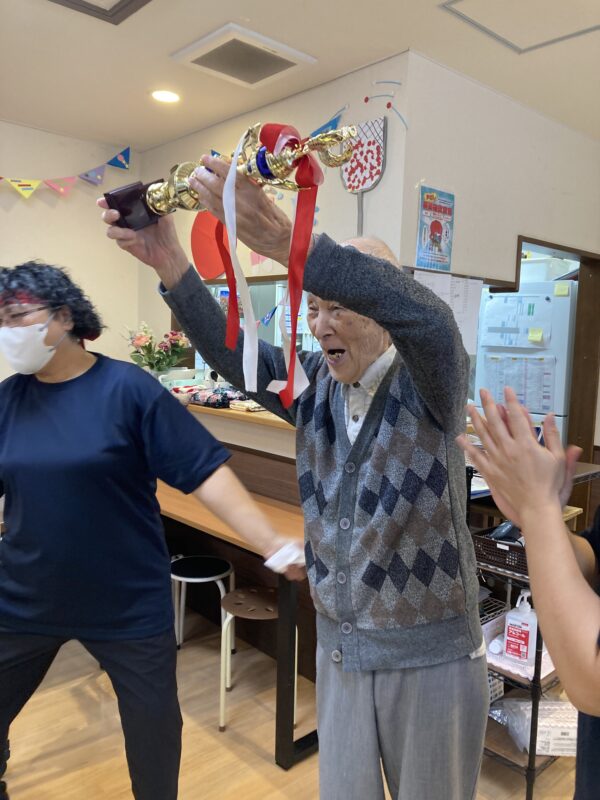 朝晩と寒さが増している今日この頃です。本日は、一年に一度の、大運動会を開催しました。選手宣誓から始まり、パン釣り競争,ボール渡し競争(この競技は、赤と白に分かれて🏀を棒で、それぞれのゴール🥅に入れます)中々の熱戦でした。最後は、職員による綱引きを行いました♪結果は、白225点、赤25点と白の圧勝で今年の大運動会は幕を下ろしました♪♪♪来年も皆様の活躍を楽しみにしています。(o^^o)