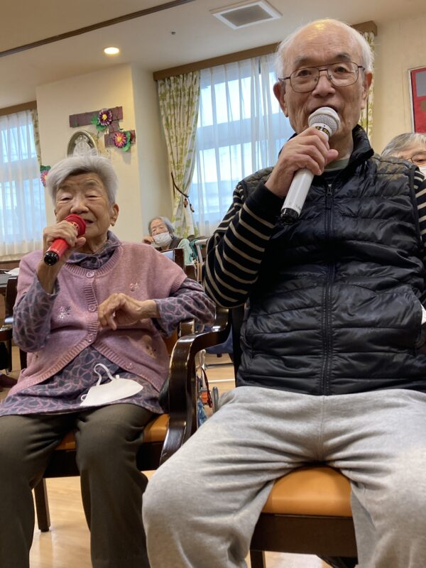 寒さも強まり冬に近づく今日この頃ですね。11月に入ってから最初のカラオケ🎤大会です。(╹◡╹)サ高住(2階)の方の参加も有り多いに盛り上がりました。演歌・歌謡曲・デユエット曲と色々な歌が次々と流れて楽しく過ごしました♪♪♪。