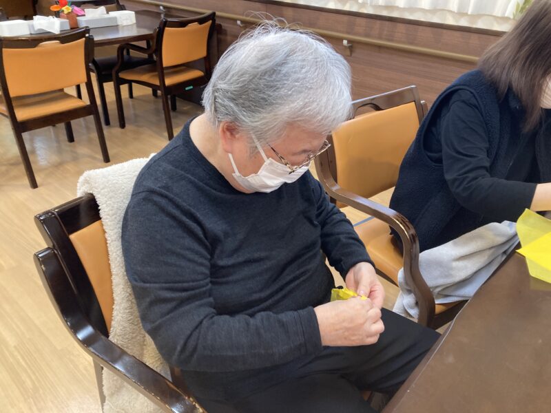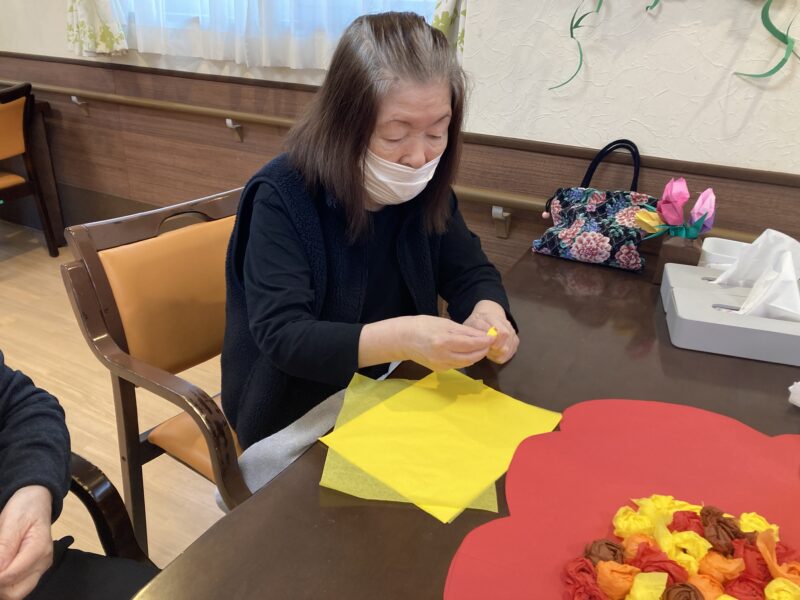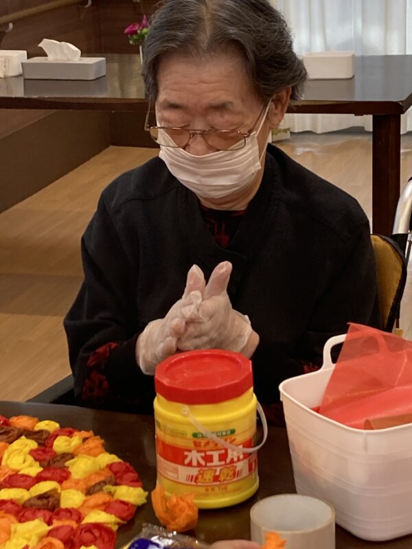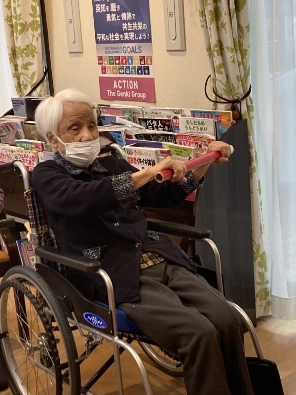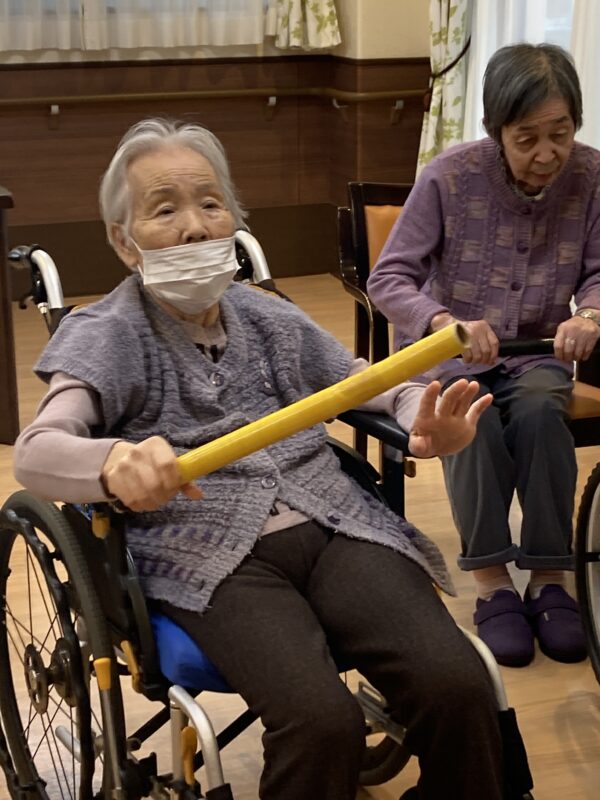 午後は棒を使った体操とフロア装飾の製作を手伝ってくださっています。