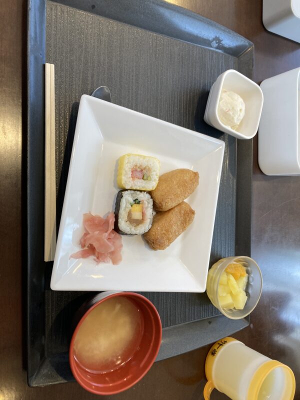 昼食は元気レストランで助六寿司、冷やし中華、エビフライ、ちらし寿司の中から好きなメニューを頼み楽しまれました。