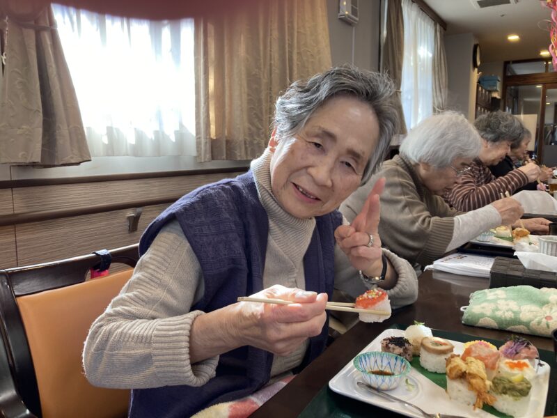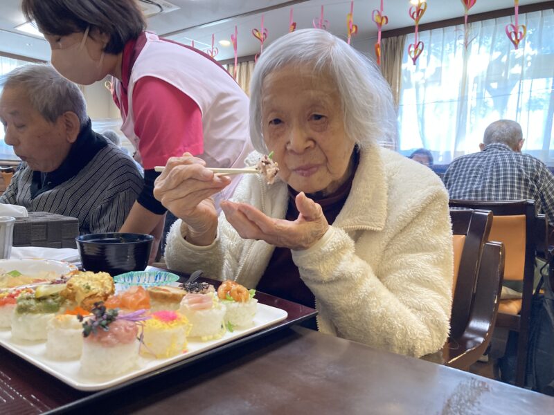 今日は2月3日、節分です!お昼ご飯にはスペシャルメニューとして色々な具材が載った豪華な太巻きを召し上がりました!