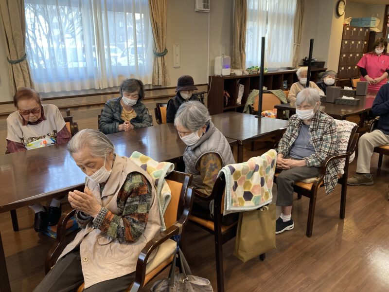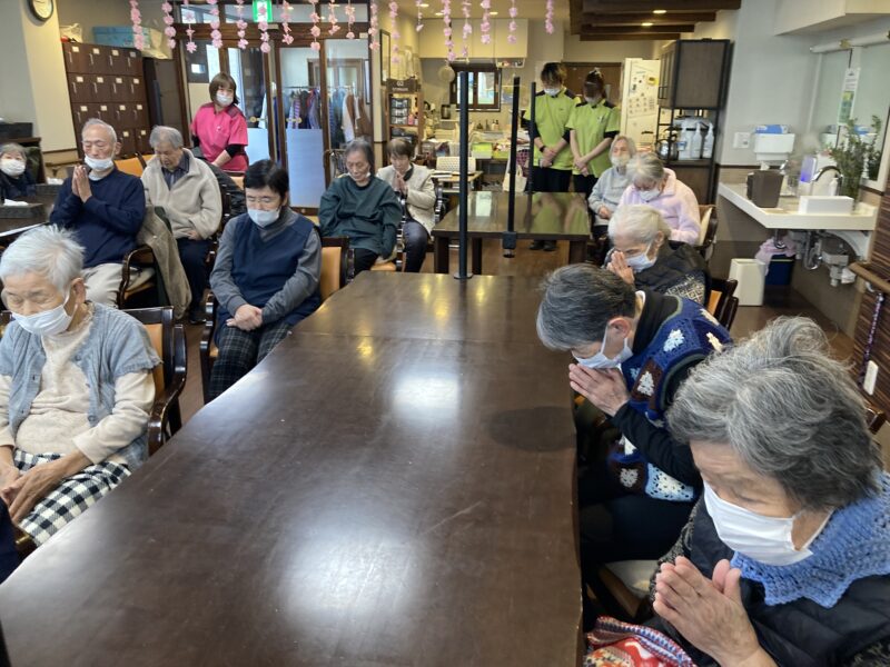 デイサービスでは震災の被害に遭われた皆さまのご冥福をお祈りし、地震発生時刻である14時46分に1分間の黙祷を行いました。