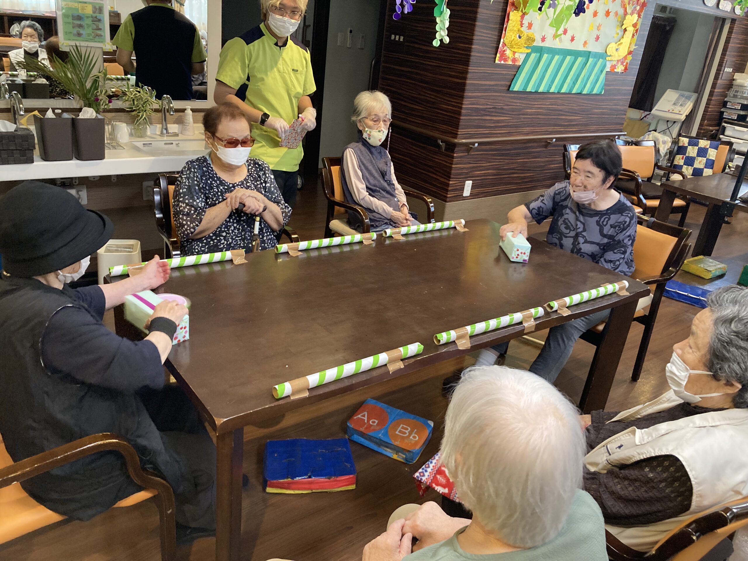今日は清々しいお天気でした。 いつもの機能訓練も外に椅子を出して 外の空気を吸いながら伸び伸びと体操しました。 午後からはテーブルホッケーで盛り上がり、 早いパックの動きに歓声が沸きました! [...]