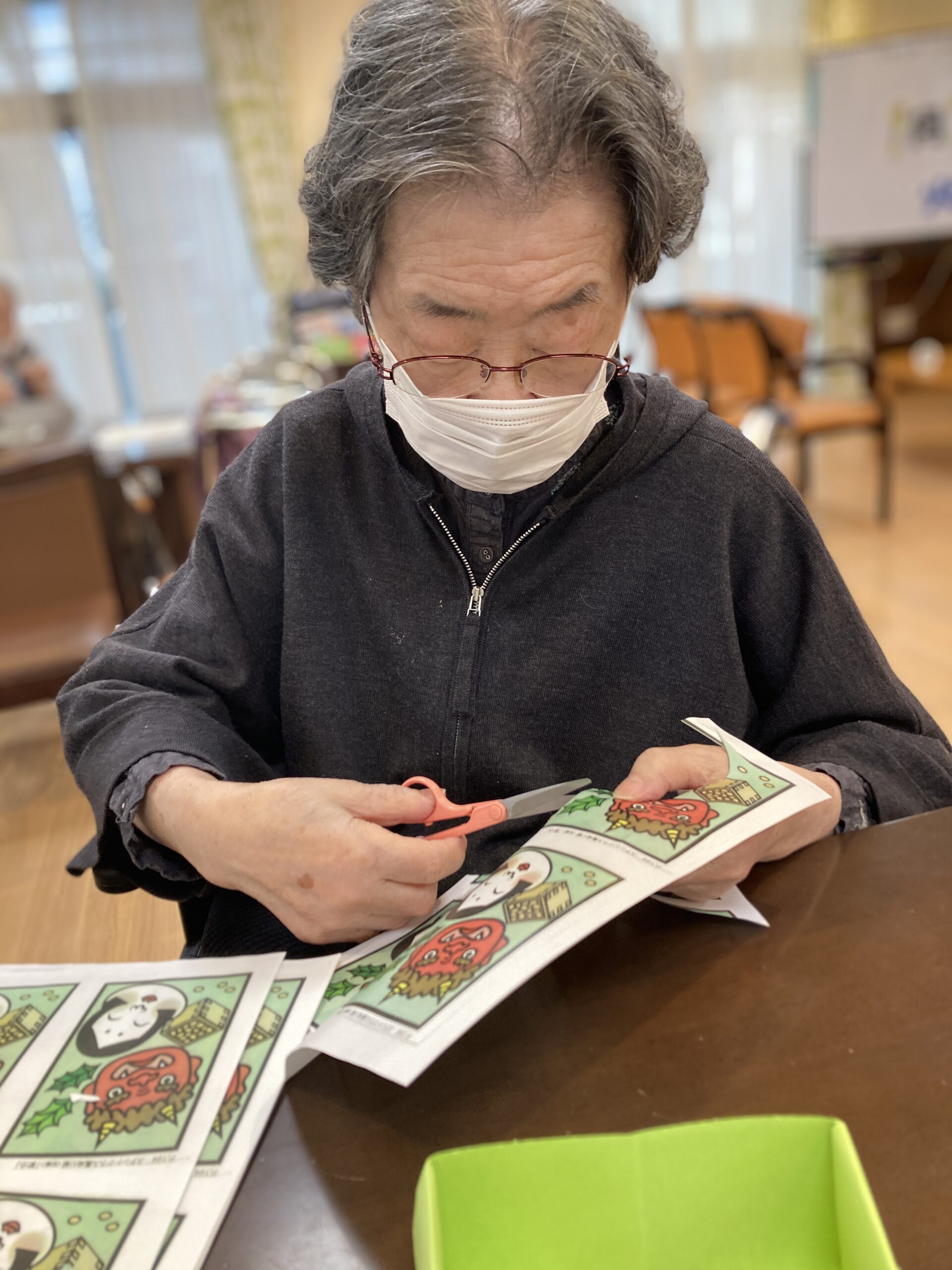 本日は空もどんより☁️寒〜い一日ですね❄️ でも皆さま元気にお過ごしです😊 午前中は体操を行い、午後は節分の準備👹! ハサミを使い、色々な切り抜きを行いました✂️ [...]