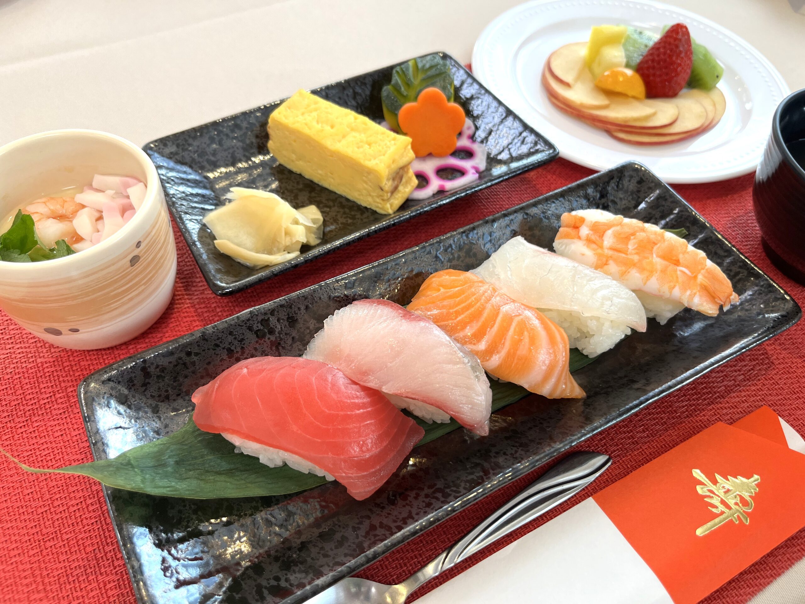 本日は開設記念日です! お昼にお寿司や茶碗蒸し、フルーツと豪華ランチを召し上がりました。 皆様お料理を前に笑顔が溢れていました。お寿司はネタが大きく美味しかったですね🍣 [...]