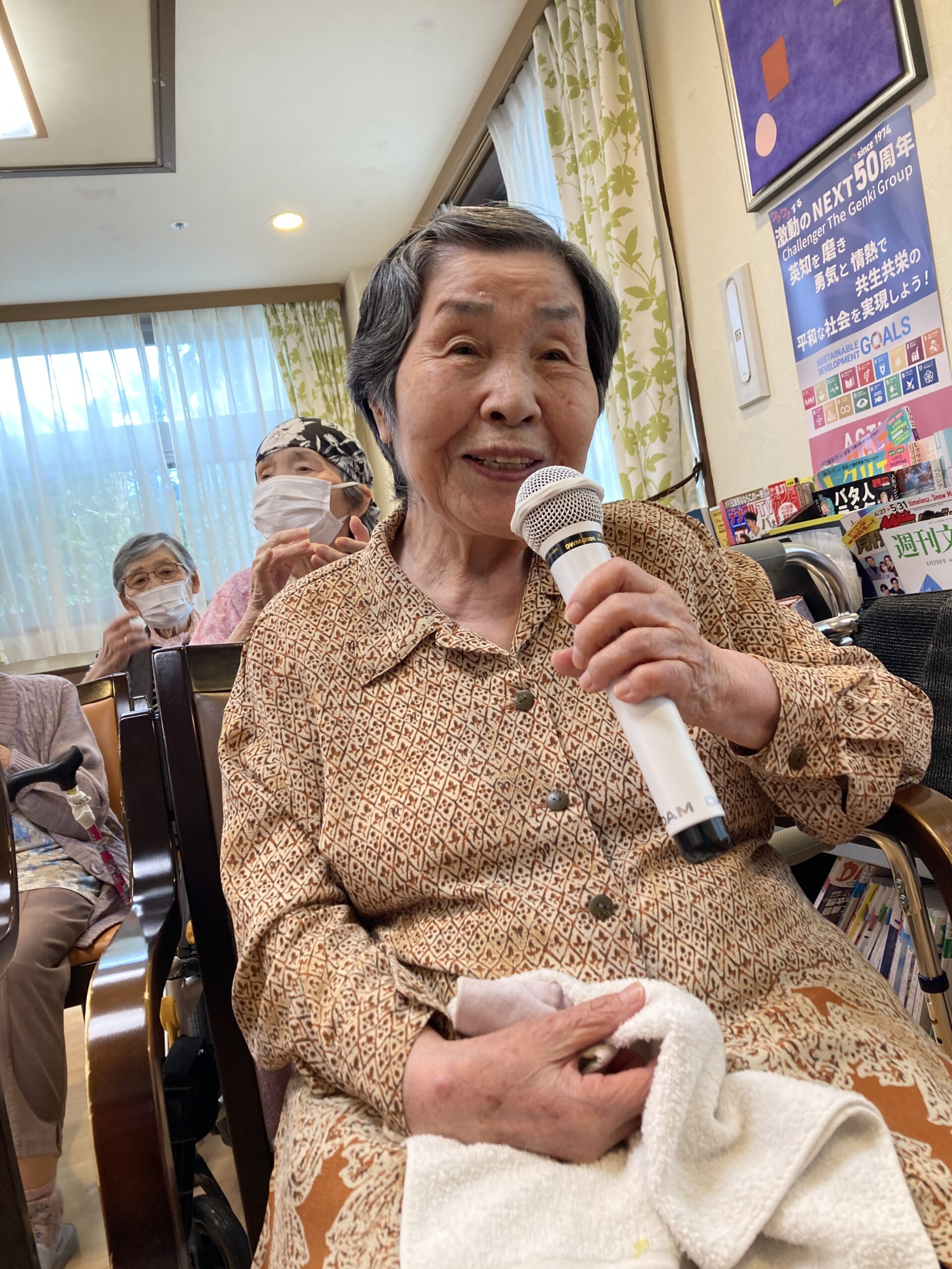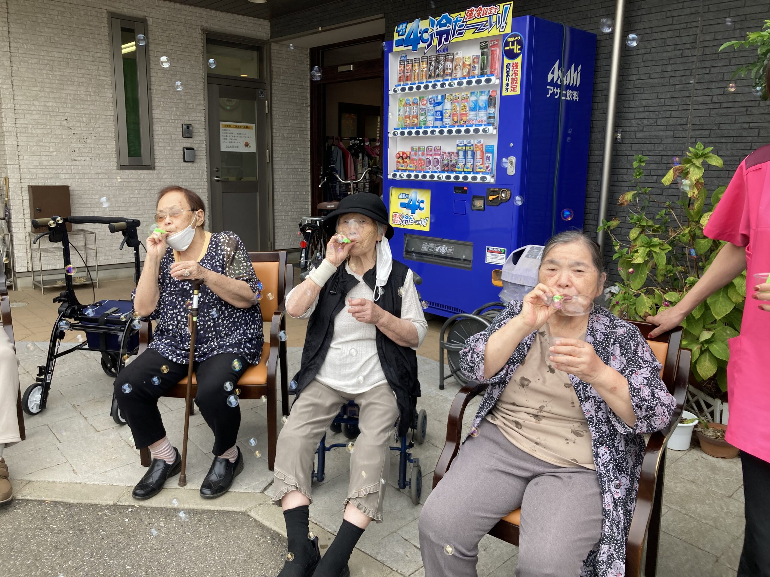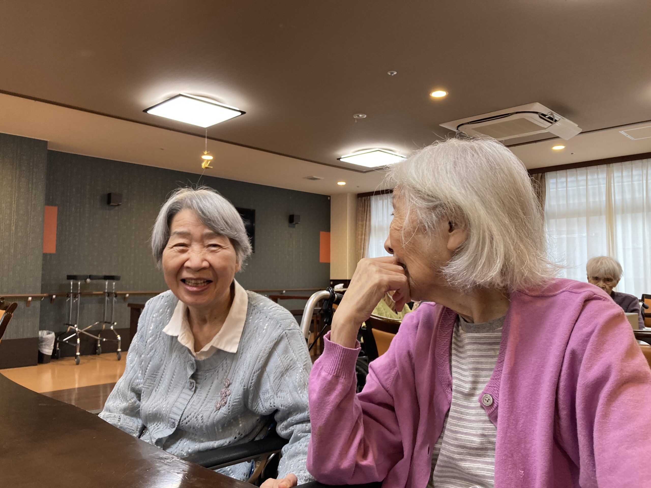 今日も秋らしい爽やかな1日になりました😊 午後からのアクティビティは外に出てシャボン玉をしました🫧 久しぶりのシャボン玉に皆さん童心に帰り素敵な笑顔が見られました😀風に乗って飛んでいく沢山のシャボン玉[...]