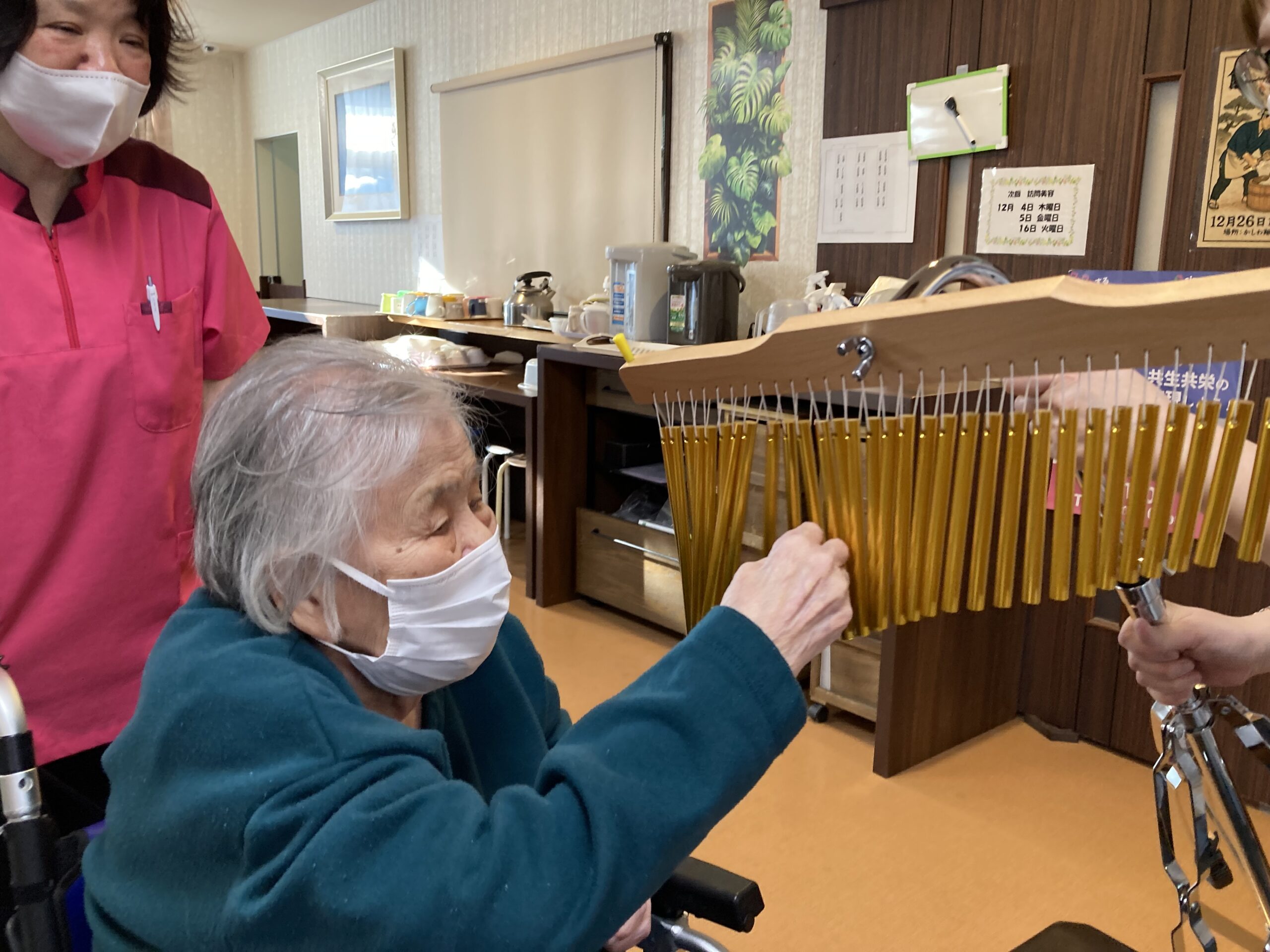 本日は、今年最後の 音楽療法の日になりました🎶 懐かしい歌からお馴染みの歌を 元気に素敵な歌声で 歌い上げていました🤗✨ また、 珍しい楽器を体験させて頂きました🎵 [...]