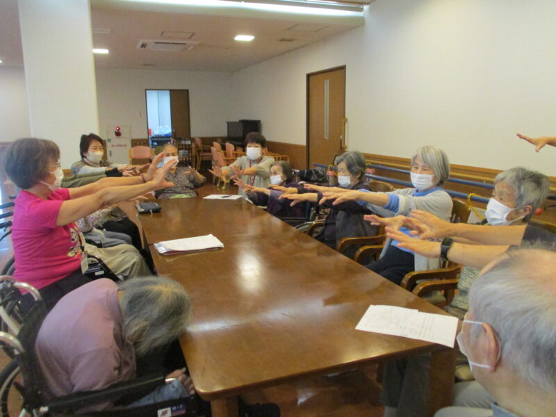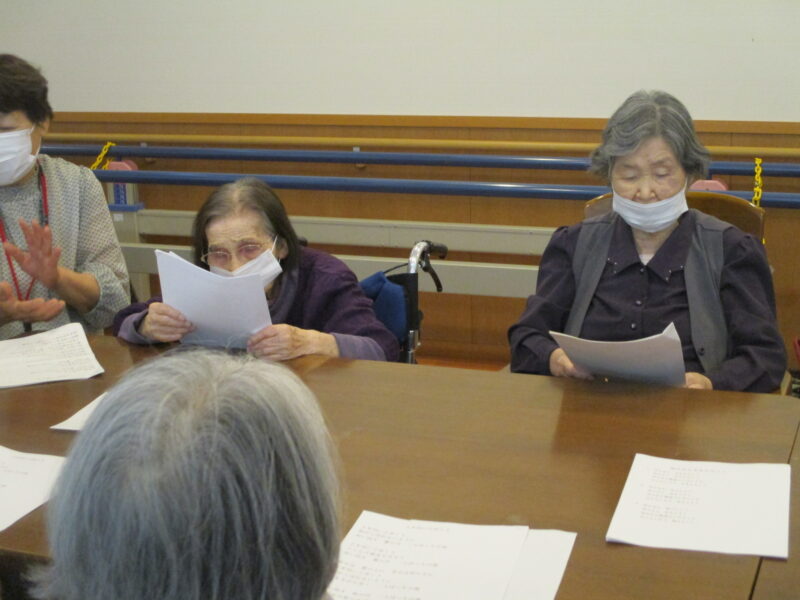 簡単な体操や、歌いながらの手遊び、最後は全員で昭和時代の曲を大合唱。