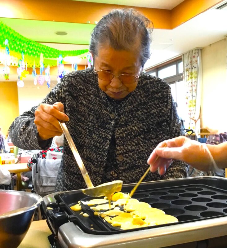 生地を、たこ焼き器に流し込み丸く、可愛く焼いていきます‼