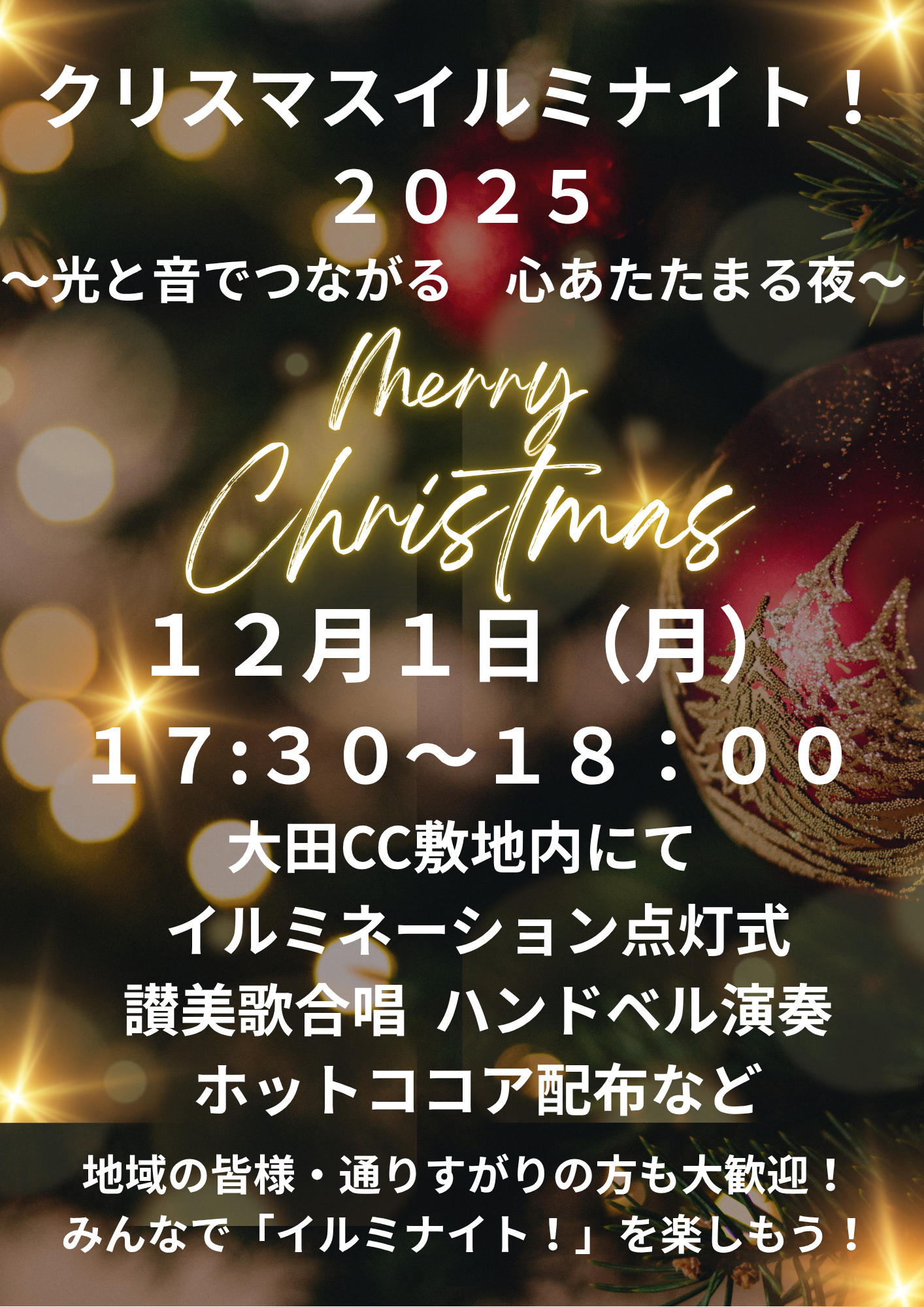 もうすぐ12月。あっという間に冬ですね。12月といえばクリスマス🎄 今年は地域の皆様、通りすがりの方々が「わ~キレイ!」と癒されたり、ウキウキしたりと 心が明るくなるようなイルミネーションを大田翔裕園[...]