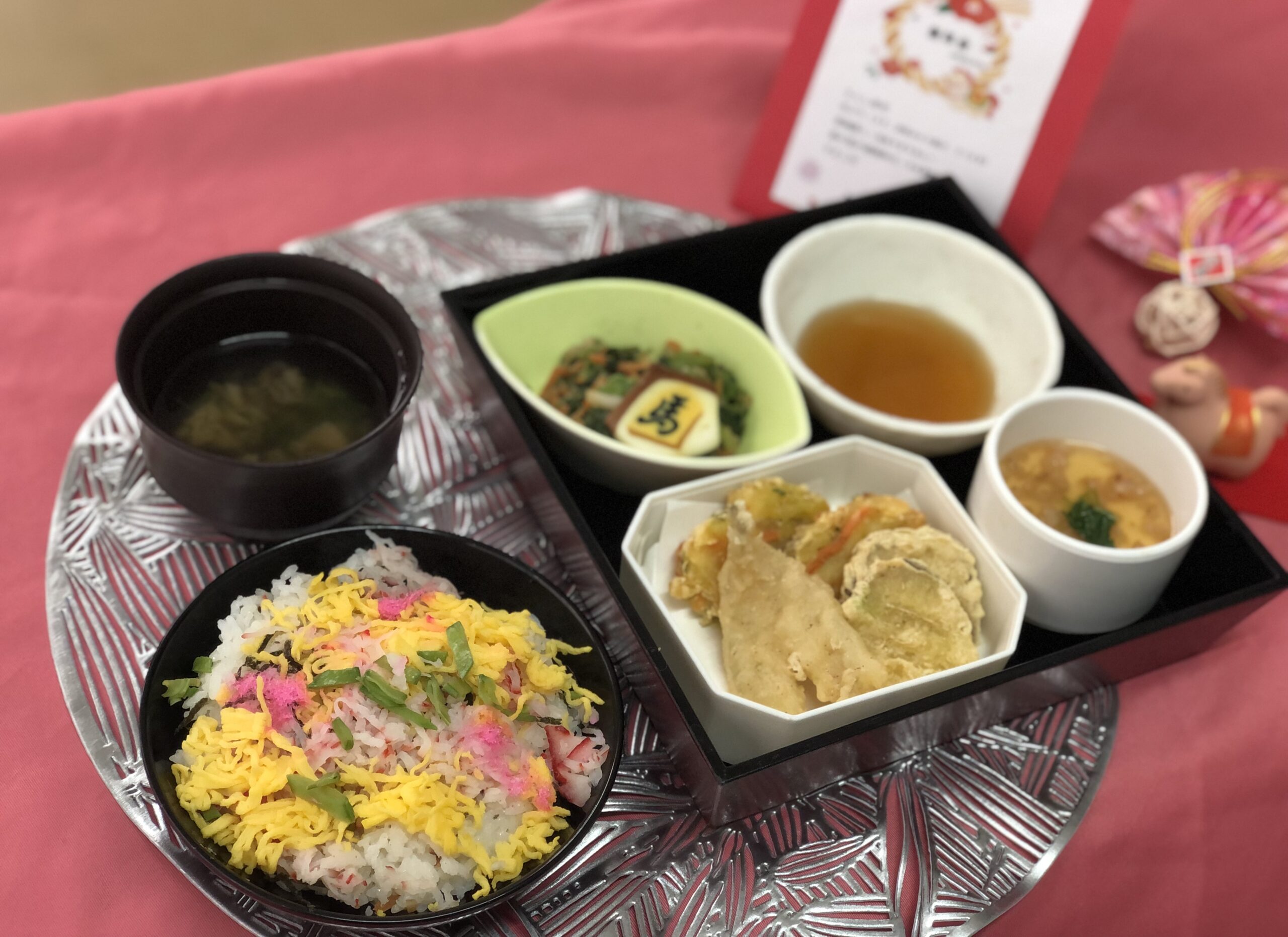 今日はデイサービスの新年会をおこないました。 昼食は和食御膳を提供しました。 ~和食御膳~ ・ちらし寿司 ・天ぷら(きす、かき揚げ、さつま芋) ・茶碗蒸し 海老そぼろあんかけ ・菜の花のごま和え 干支[...]