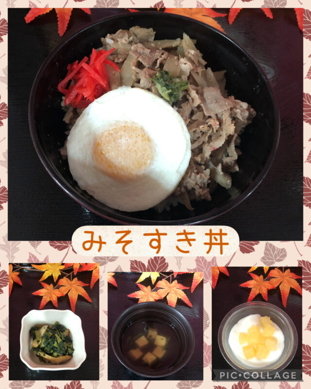 みそすき丼は長野県で2007年に誕生したご当地料理だそうです。牛肉、ごぼう、玉ねぎに味噌味がよく合っています。