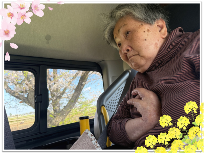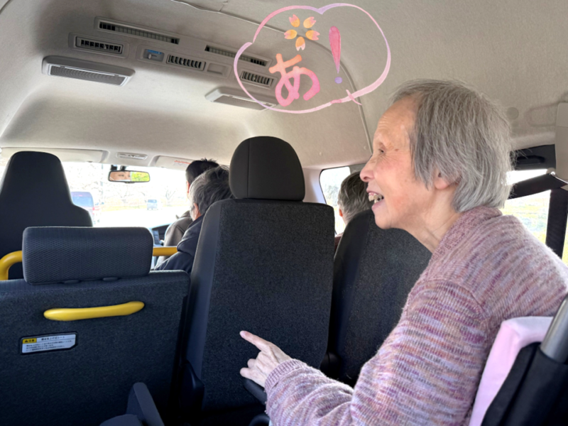 施設の近くには桜並木が少ないため、職員の発案で実現した今回のドライブ🚘