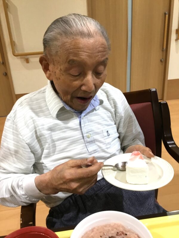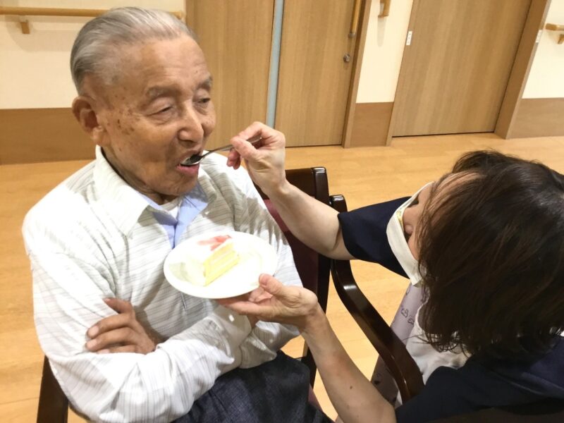 しょうぶ翔裕園では今年から、お誕生日の入居者さまにお誕生日ケーキの提供を行っています。