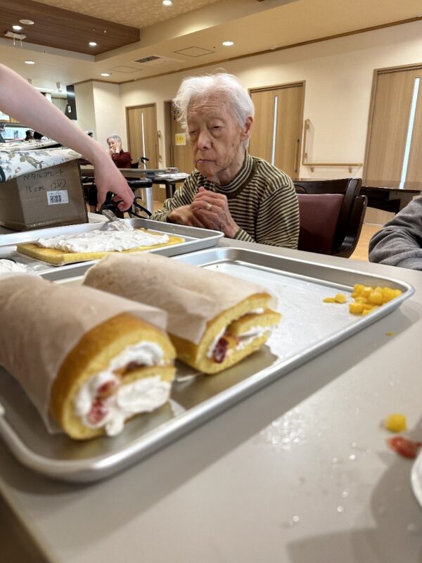今日は、いちょう3番地で【ぐるぐるロールケーキ!】のおやつレクを実施しました✨