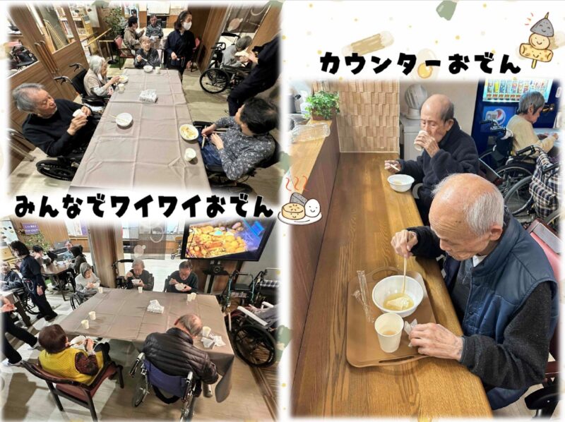 施設内に貼ったチラシを見て楽しみにしてくださってた入居者様、「美味しい」と涙しておかわりもしてくださった入居者様、インスタを見て来てくださったご家族様、色んな笑顔を見る事ができて、あつあつおでんに負けないぐらいの温かい気持ちになれました🥹