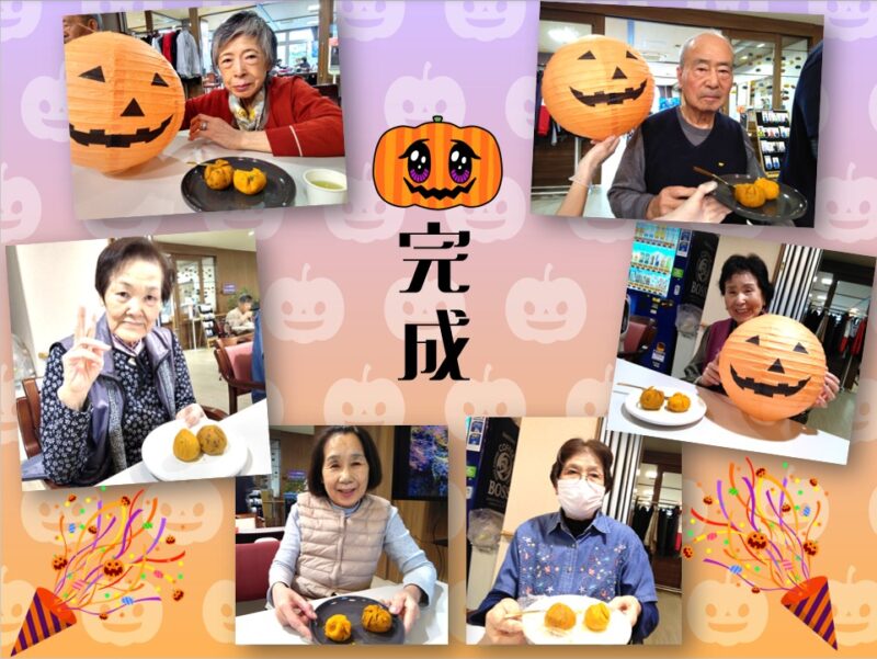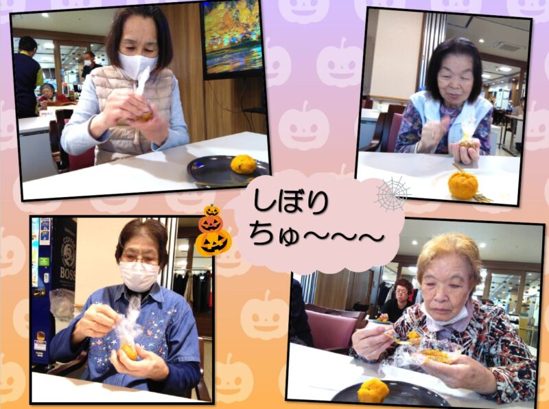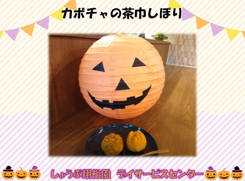 10月最後の日のデイサービスでは、かぼちゃの茶巾しぼりが開催されました♪
