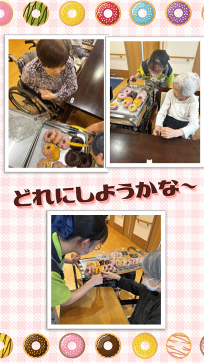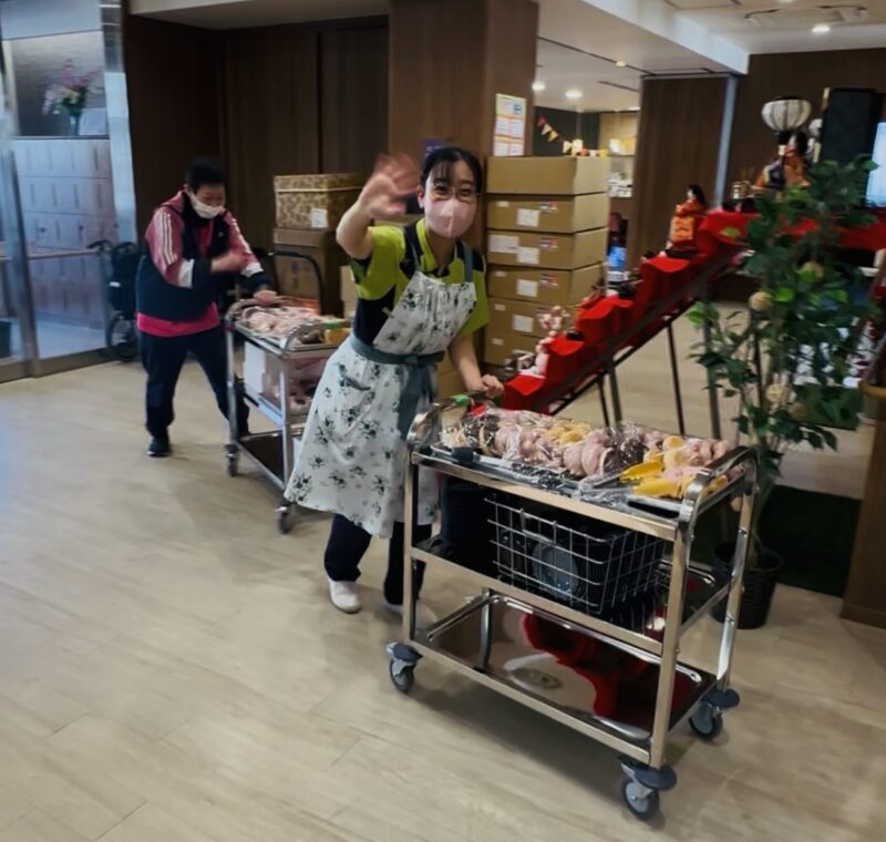 管理栄養士が、ぴっかぴかのワゴンで入居者様の元にドーナツをお届けしました!😆✨