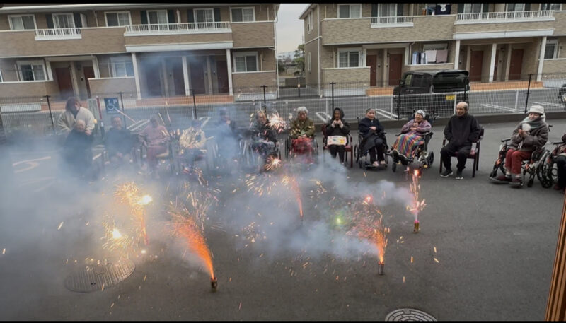 おまんじゅうレクのあとは、夕方からは冬の花火大会を開催🎆