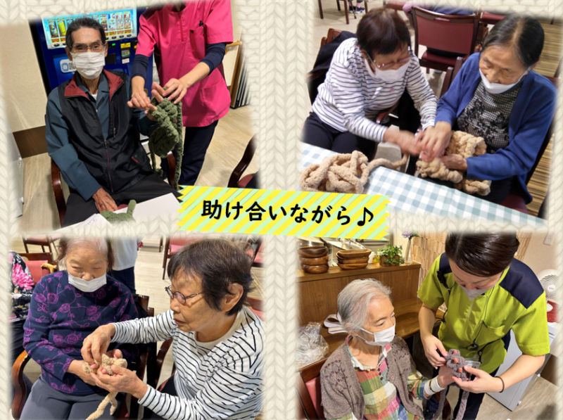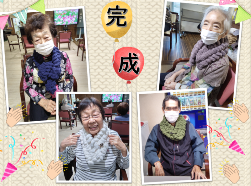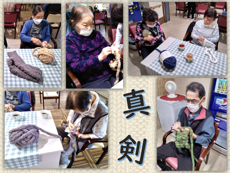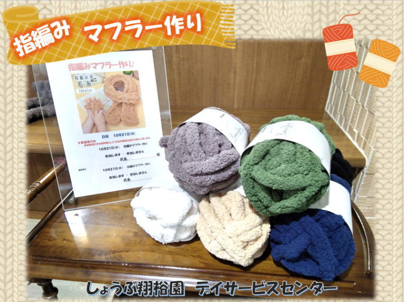 今回のデイサービスのイベントは、指編みマフラー作り♪