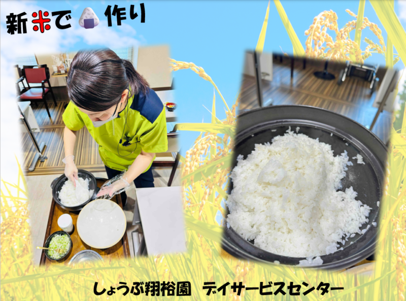 先日、しょうぶ翔裕園デイサービスセンターでは、『今年収穫した新米を使って🍙を作ろう!!』のイベントがありました。