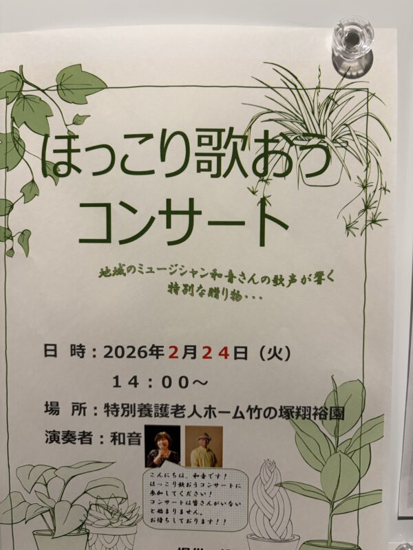 今日は、ボランティア「和音」の方のコンサートがありました。