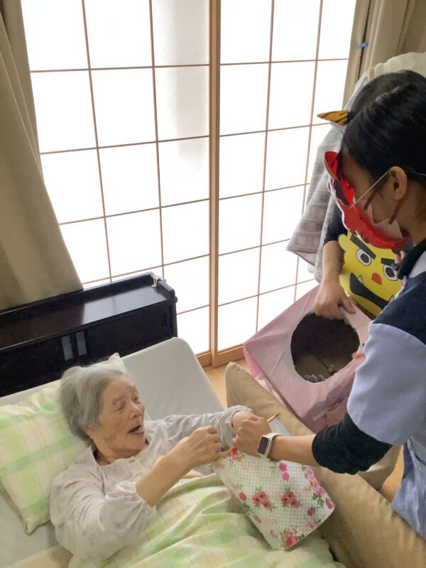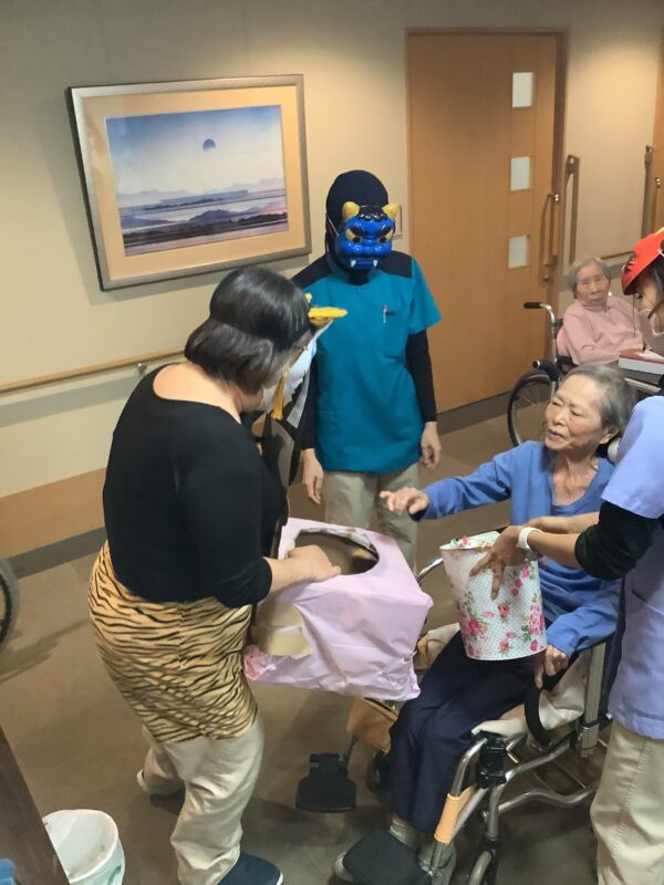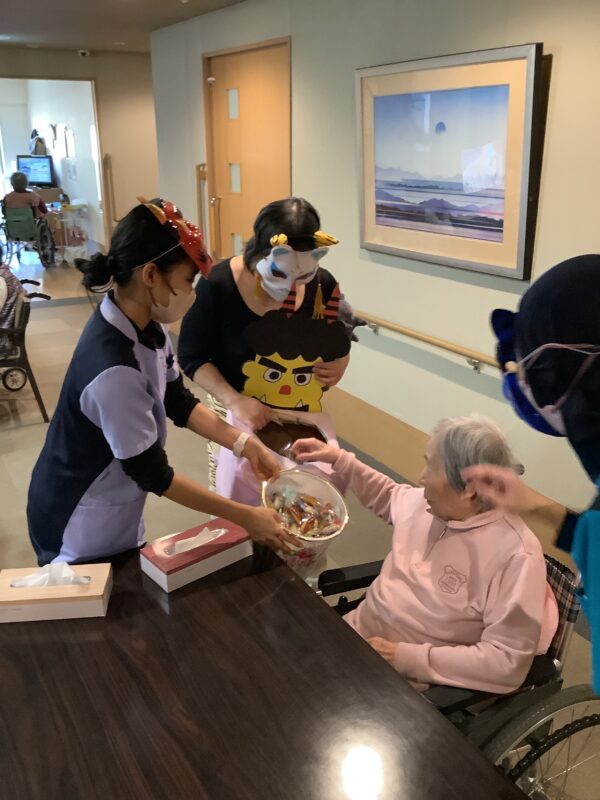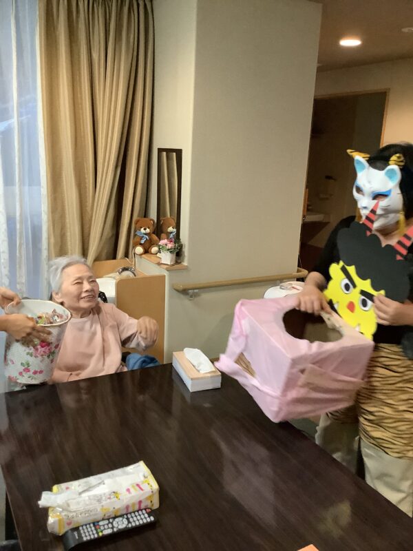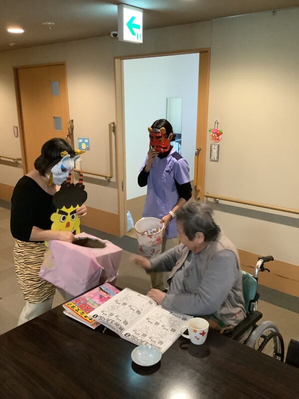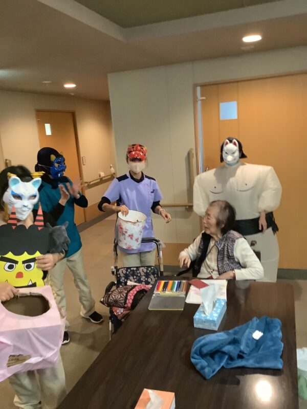 皆さんのところを回りました。入居者のかたから「鬼も邪気を払ってくれるから内は鬼ともいうんだよね」と教えてくださいました。