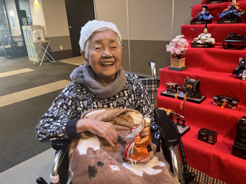 1Fにお雛様を飾りました。🎎面会に来られた家族の方も足を止めて「きれいね」と眺めてくださいます。(^^♪