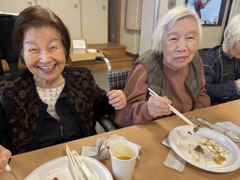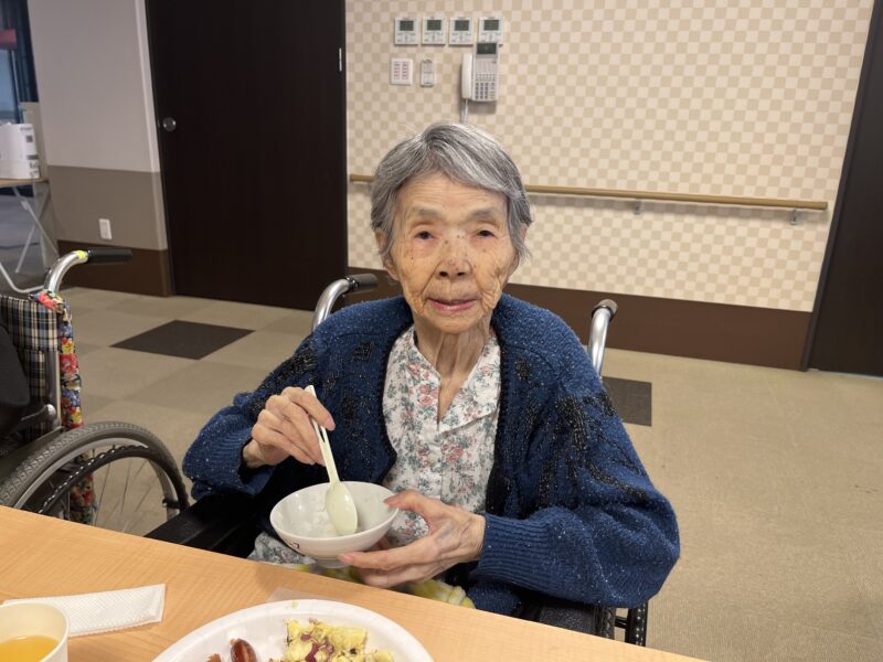 お肉やお野菜、ウインナー等を召しがり「美味しいよ💛」と教えてくださいました。