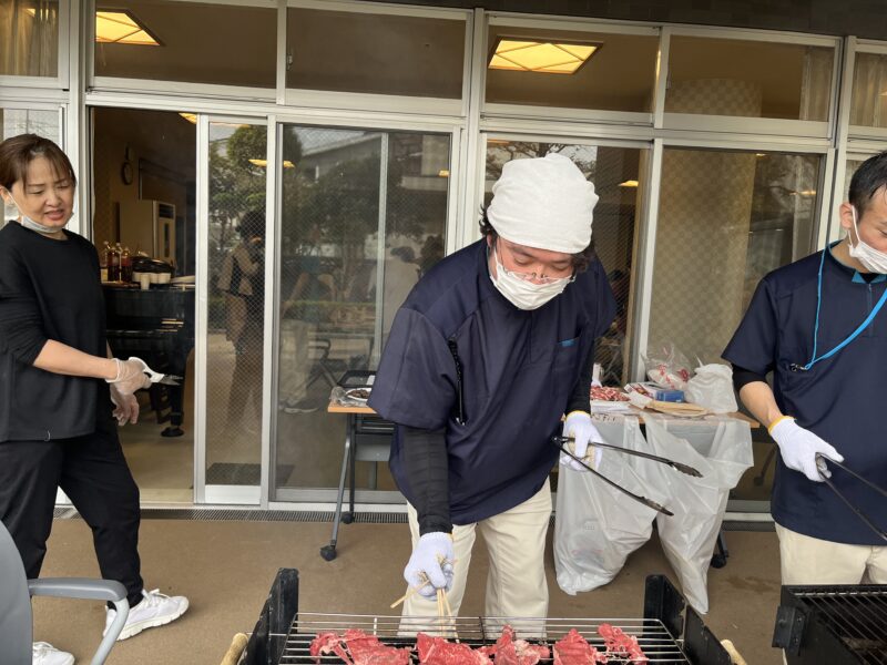 今日は、IF多目的ホールで3階に住まわれている皆様をご招待してBBQを開催しました、