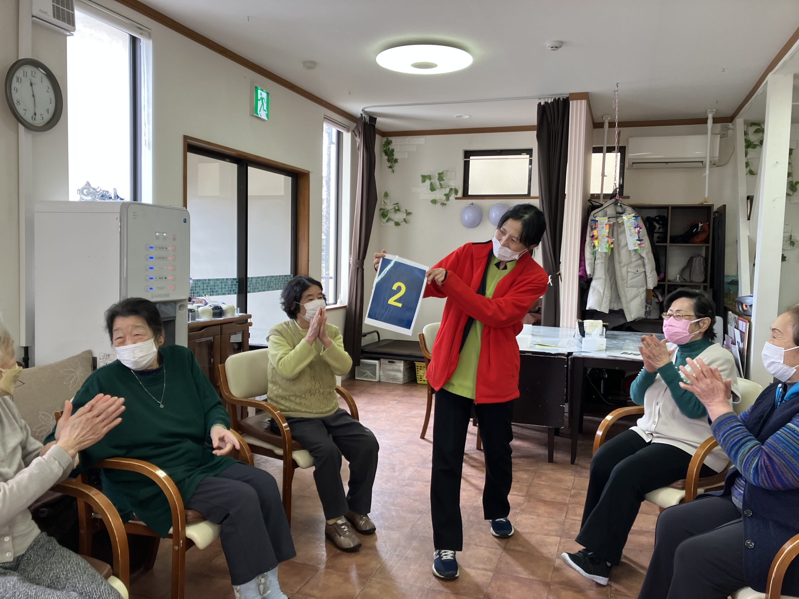 皆さま、こんにちは!本日は色&数字が書いてあるカードを使って脳トレをしました! 緑なのに赤文字で書いてあるので、ややこしいですね!でもそれが脳を刺激するんです(^^♪ ひとりひとりカードを引いて、それ[...]