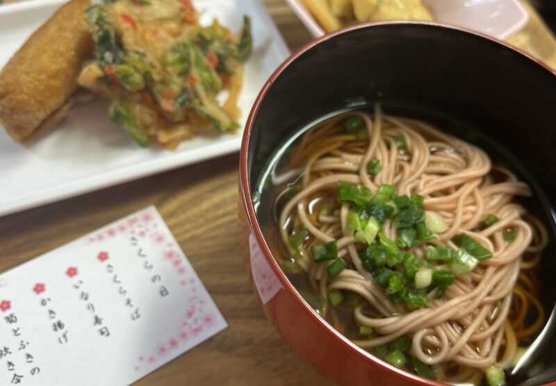 今日は特別メニュー“さくらそば”“いなり寿司”“筍とふきの炊き合わせ”など春らしいお食事をご用意!
