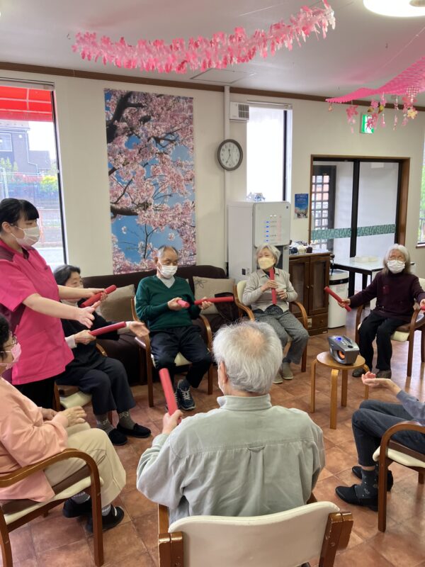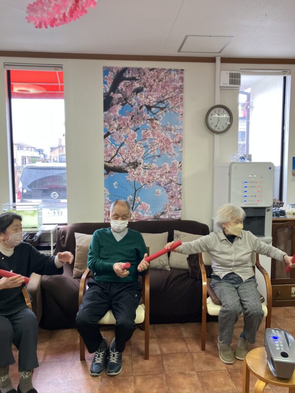 午前の体操の後には、フレックスバーを使っての運動です!!適度な重さがあるので、掴んだり捻ったりと力が必要なんです!