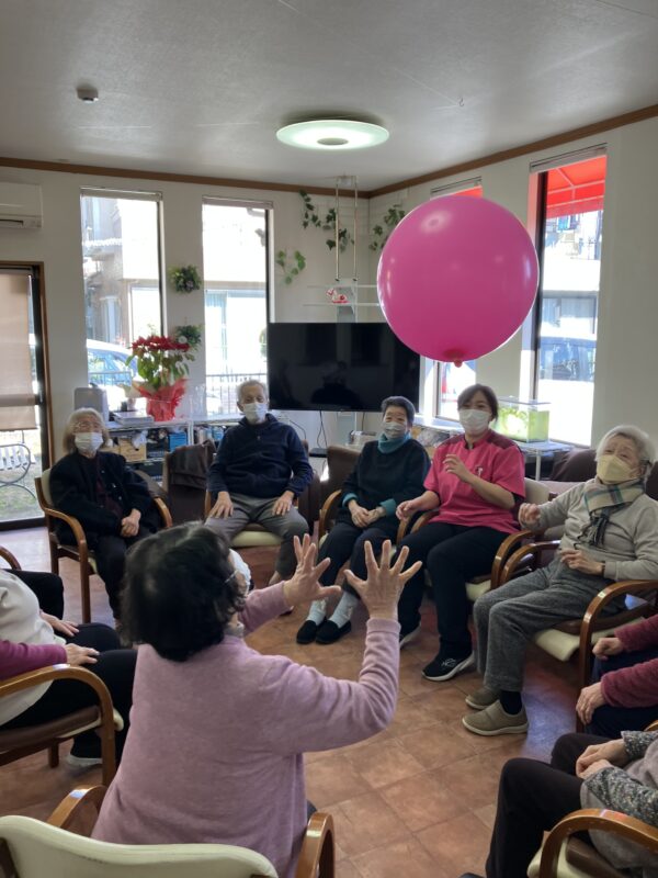 その後は円になり風船バレーボール(^^)/公式風船を使っているので、軽いタッチでもラリーができます!なんと97回ラリーが続きました!