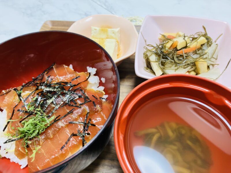 てこね寿司にちゃつ、豆腐の田楽、あおさ汁でした♪