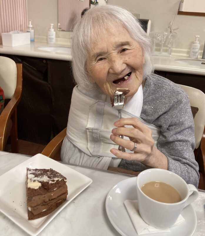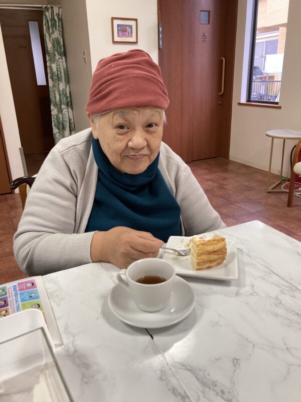 おやつの時間はケーキと紅茶やコーヒーと一緒に召し上がっていただきました。